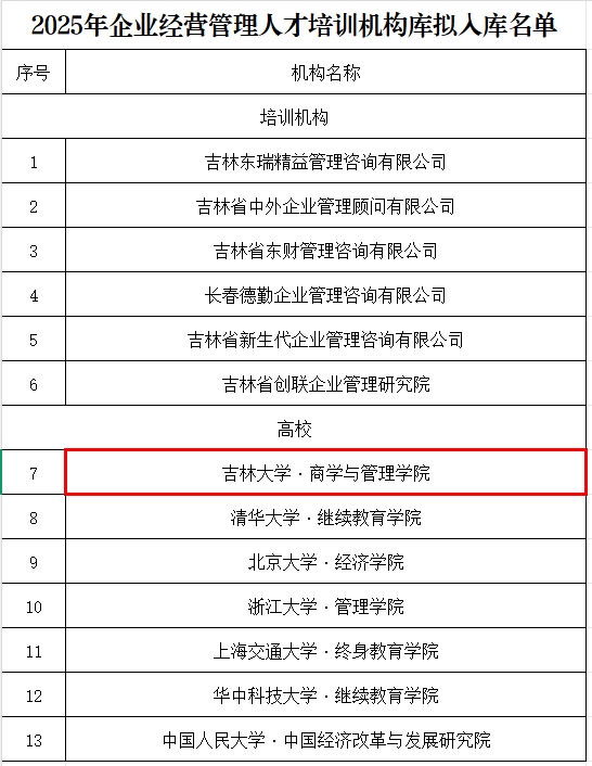 近日,吉林省工业和信息化厅发布了2025年企业经营管理人才培训机构库拟入库名单,suncitygroup太阳成集团凭借雄厚的团队力量、丰富的教学资源和卓越的培训成果,成功入选。