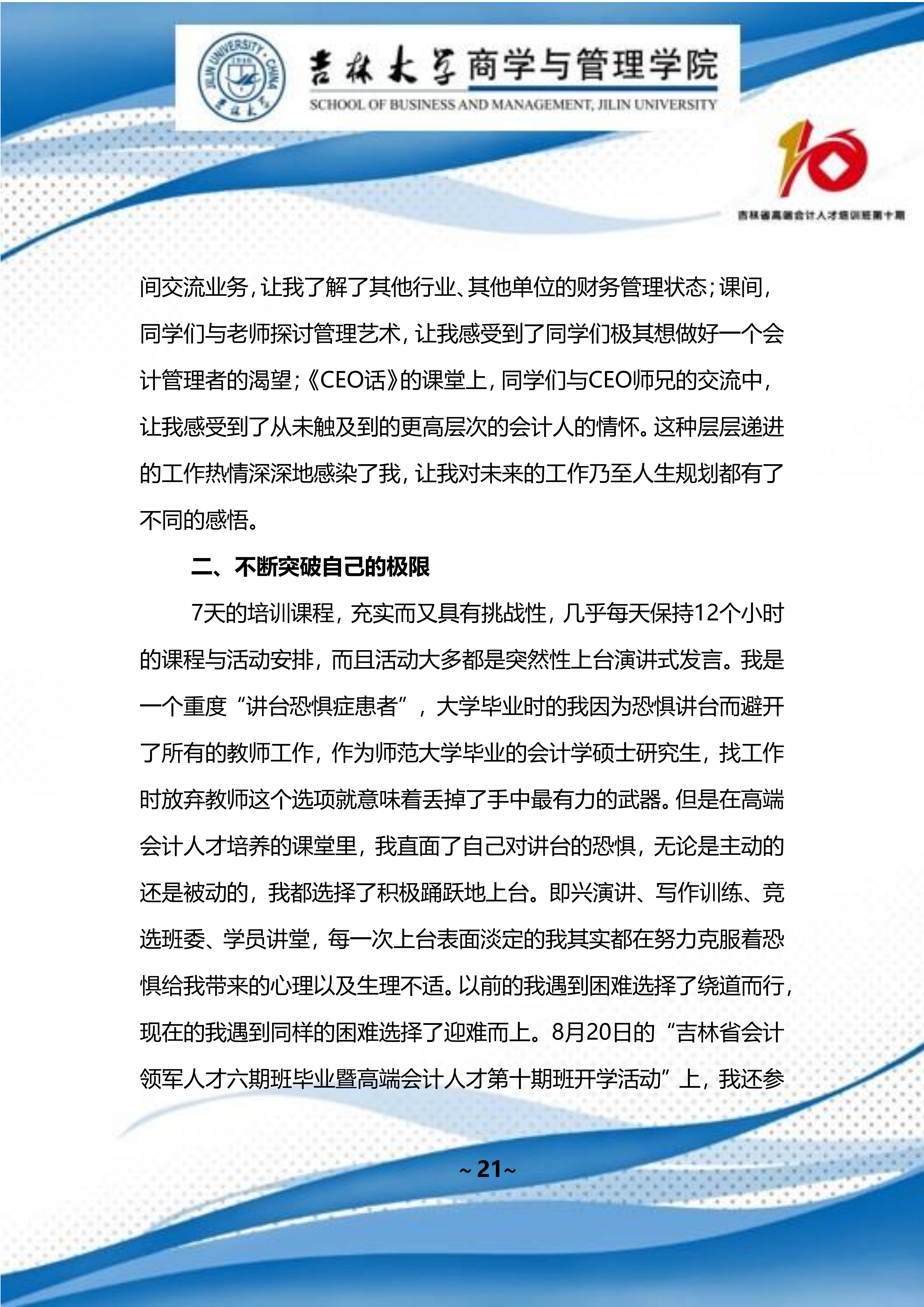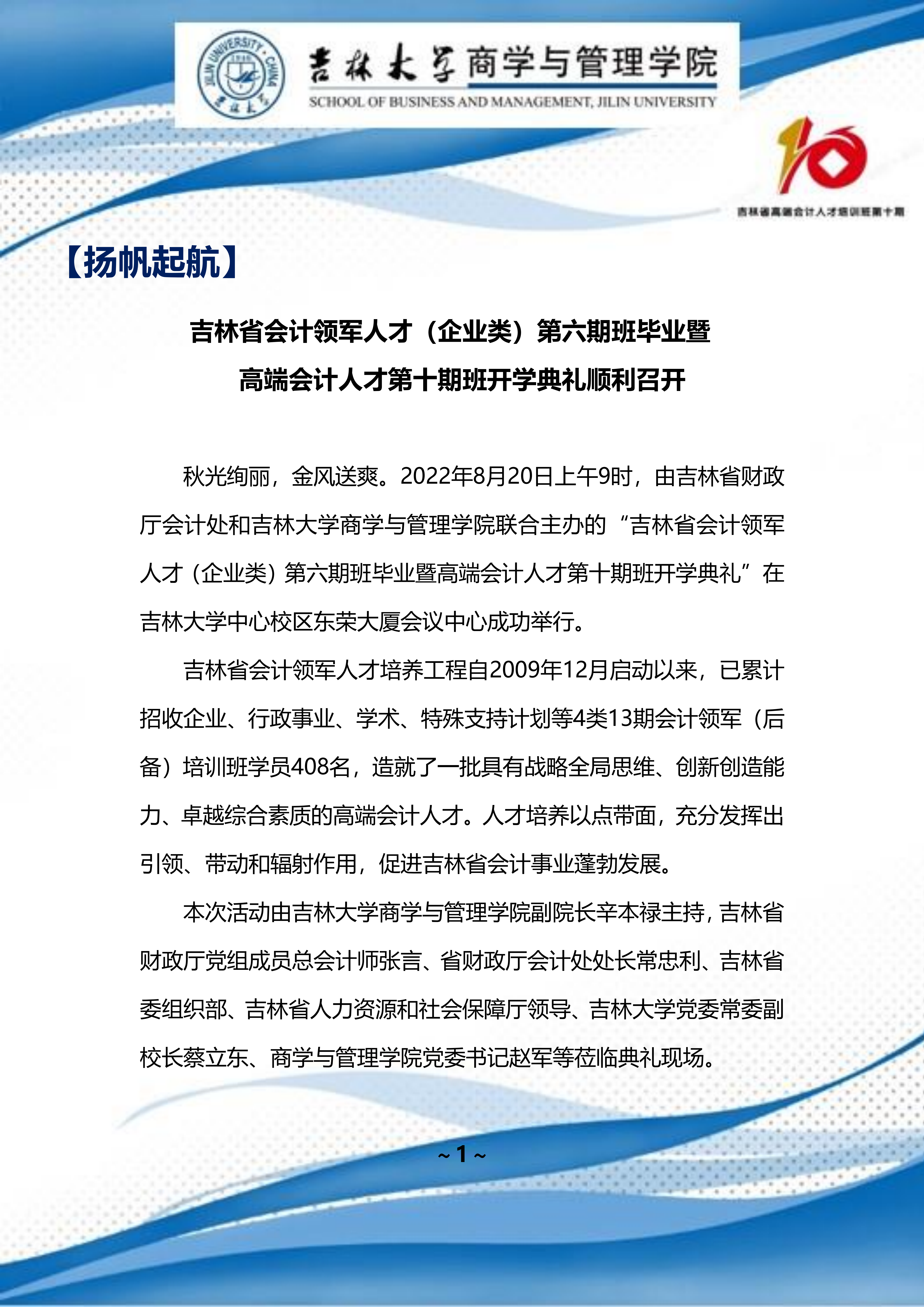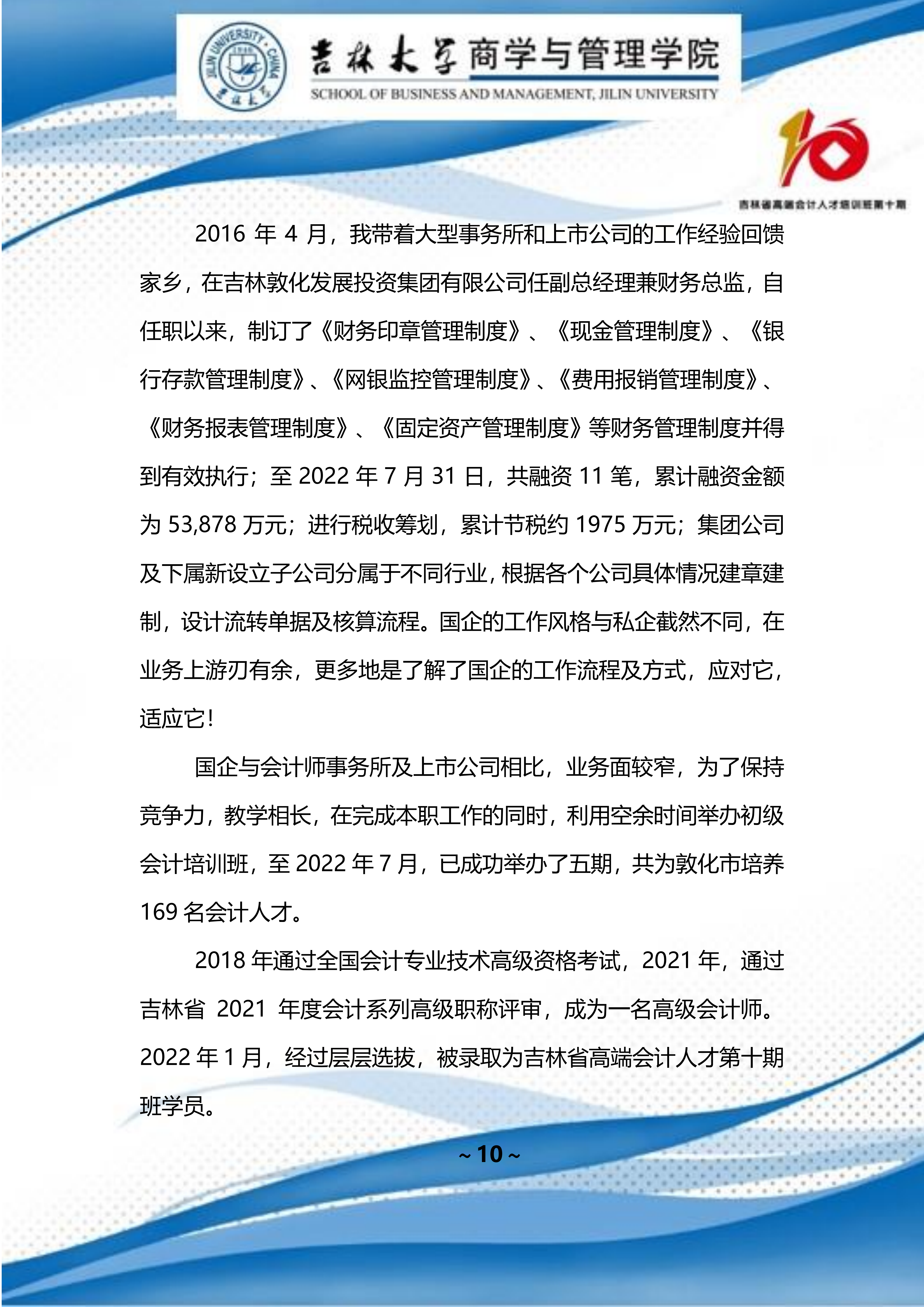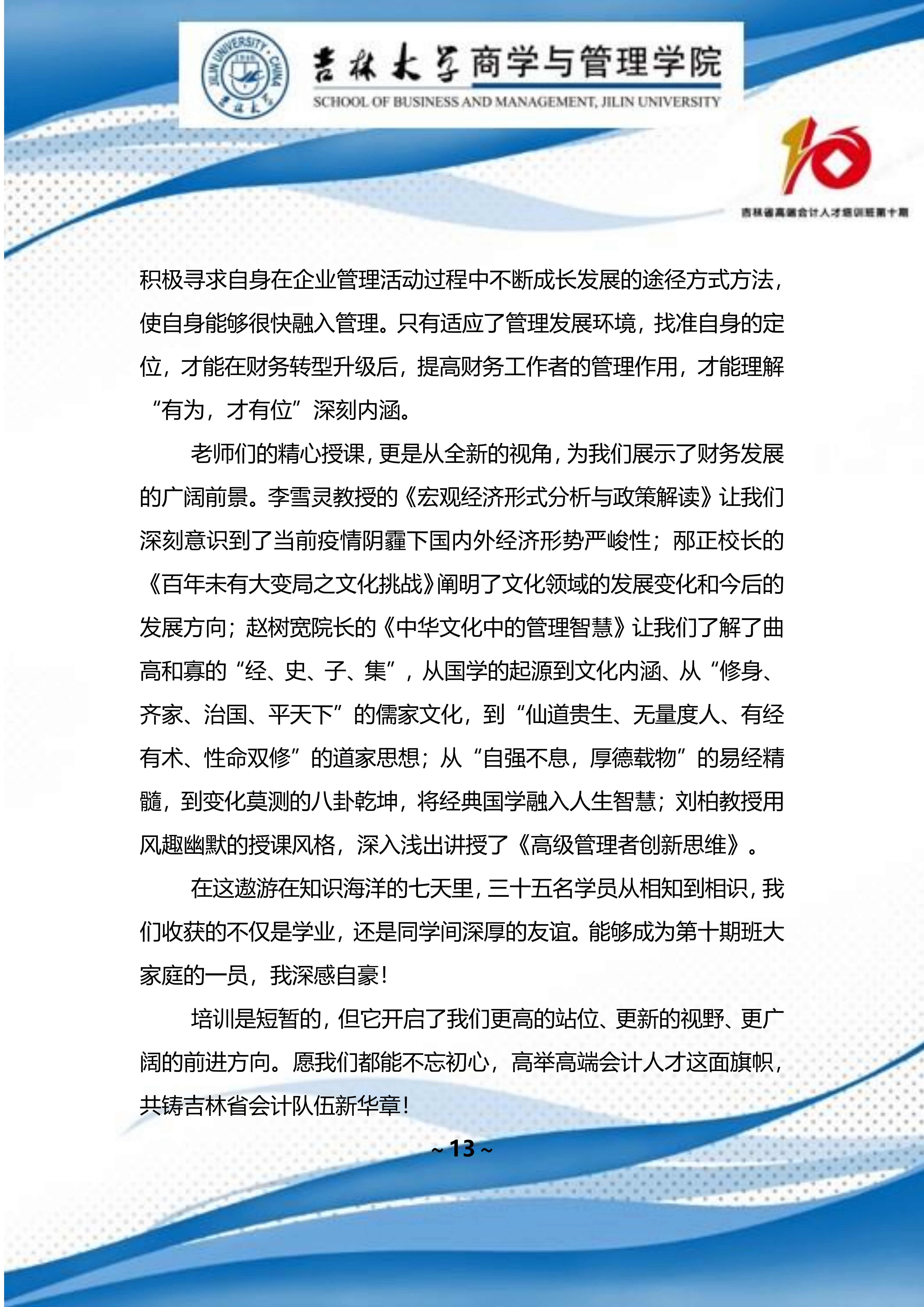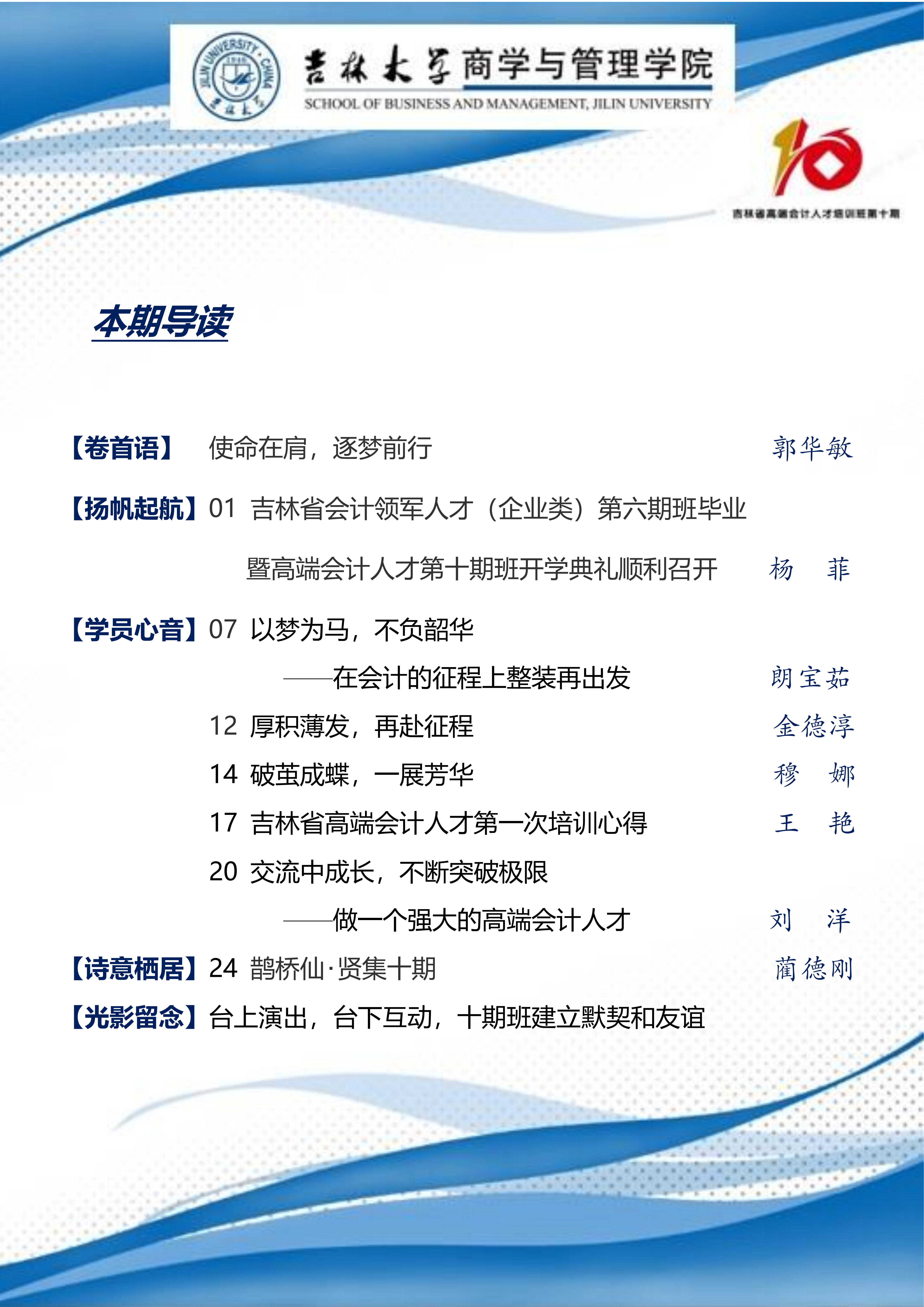 吉林省高端会计人才培训班 第十期班期刊 【2022 年第 01 期】