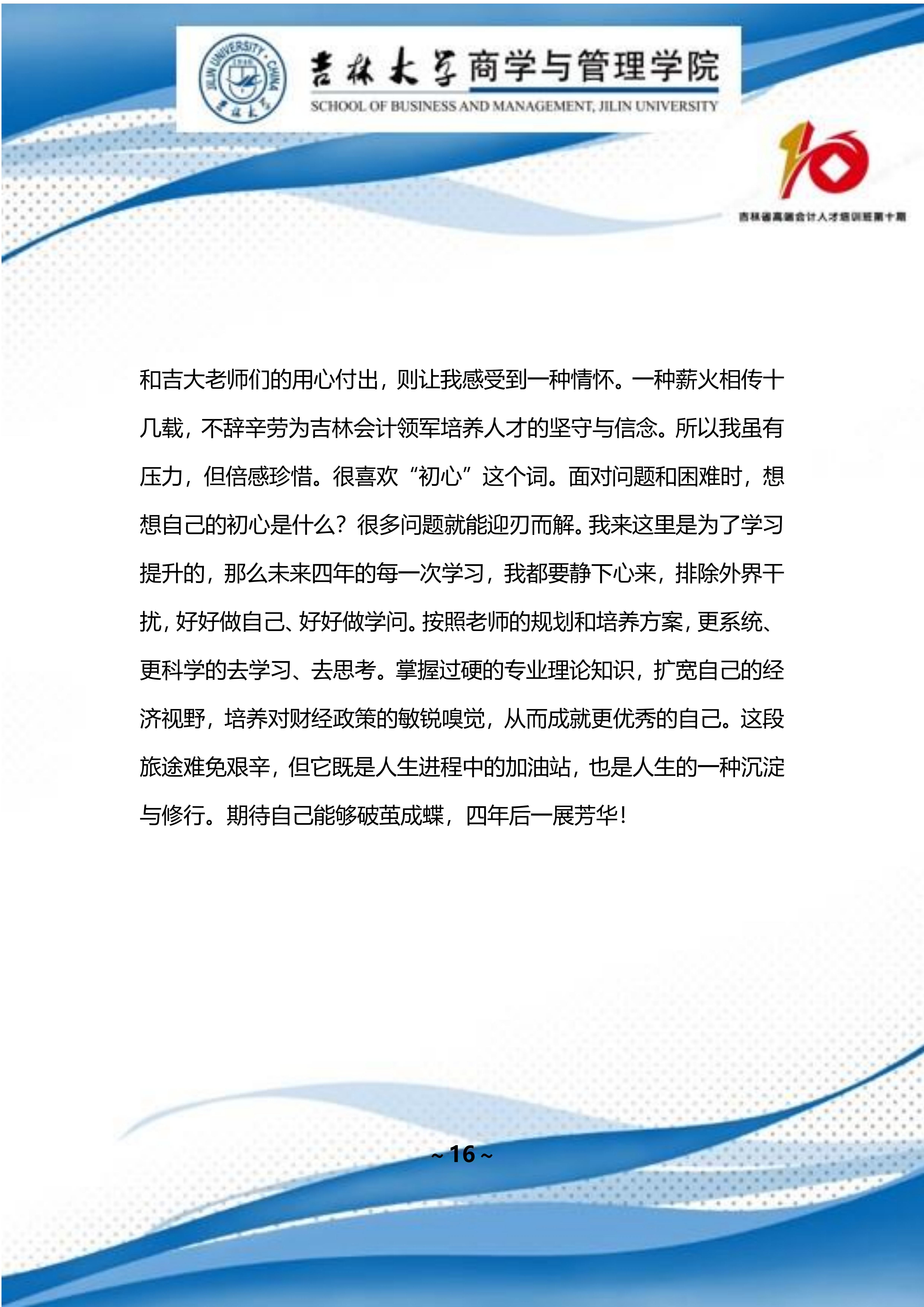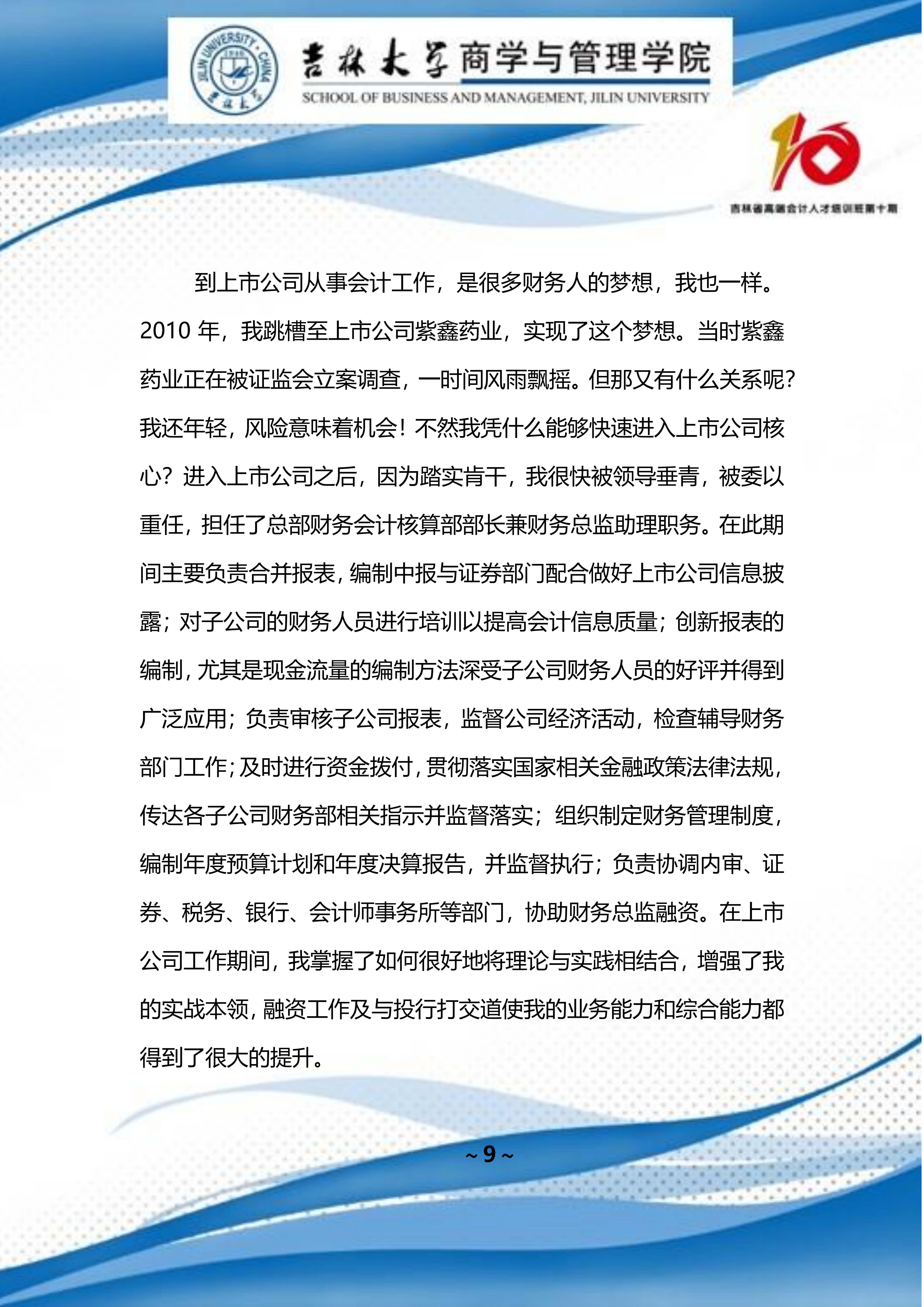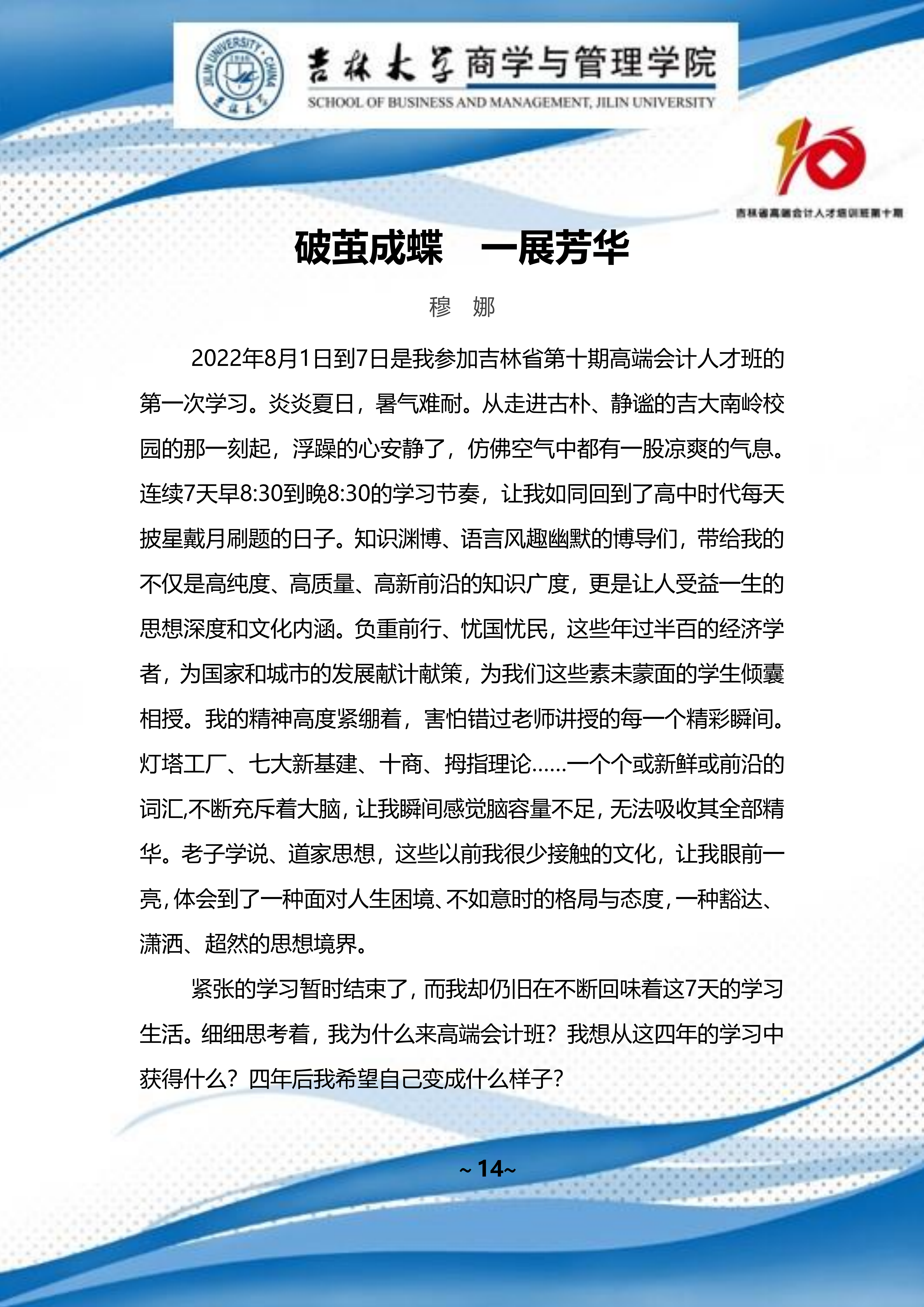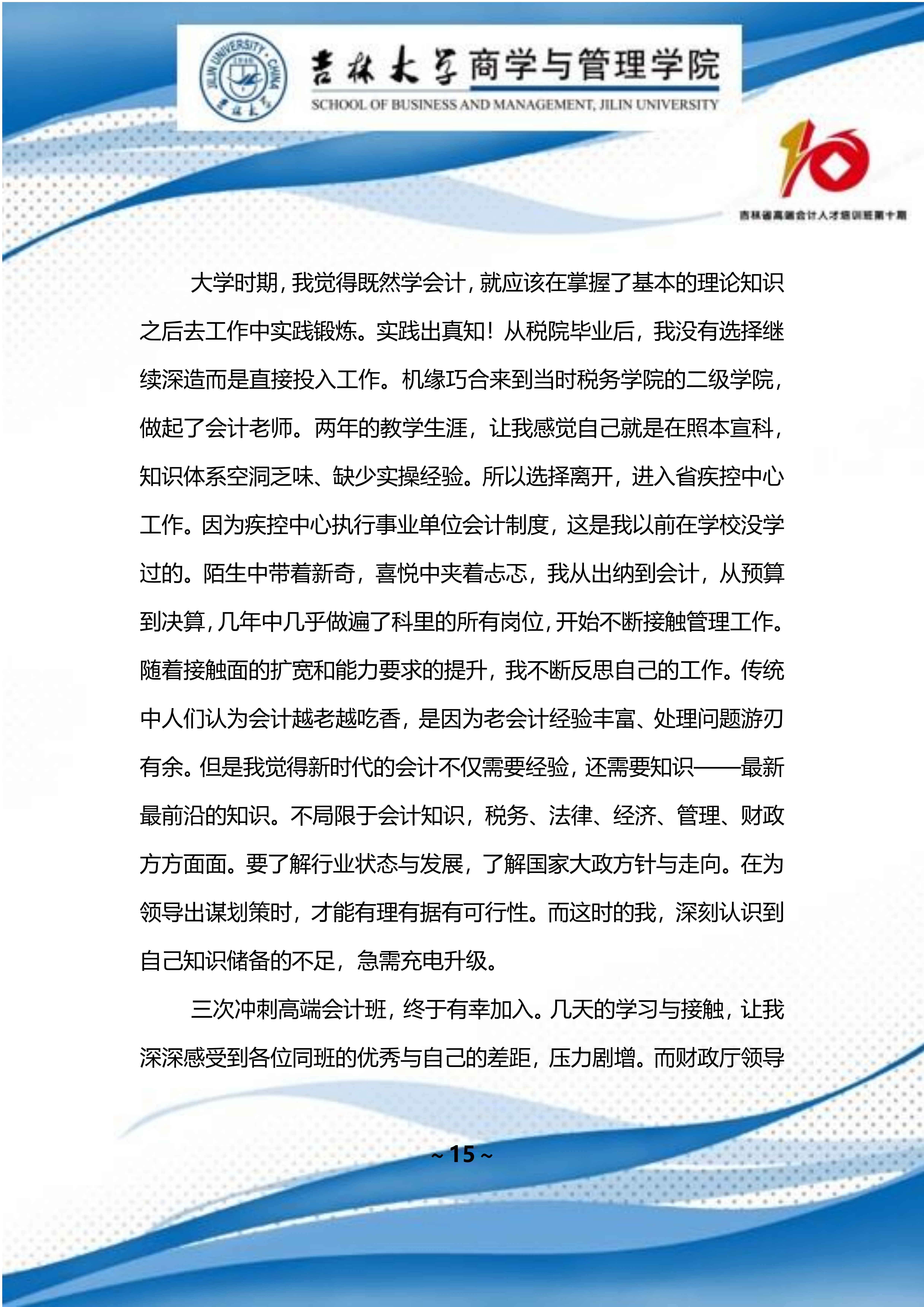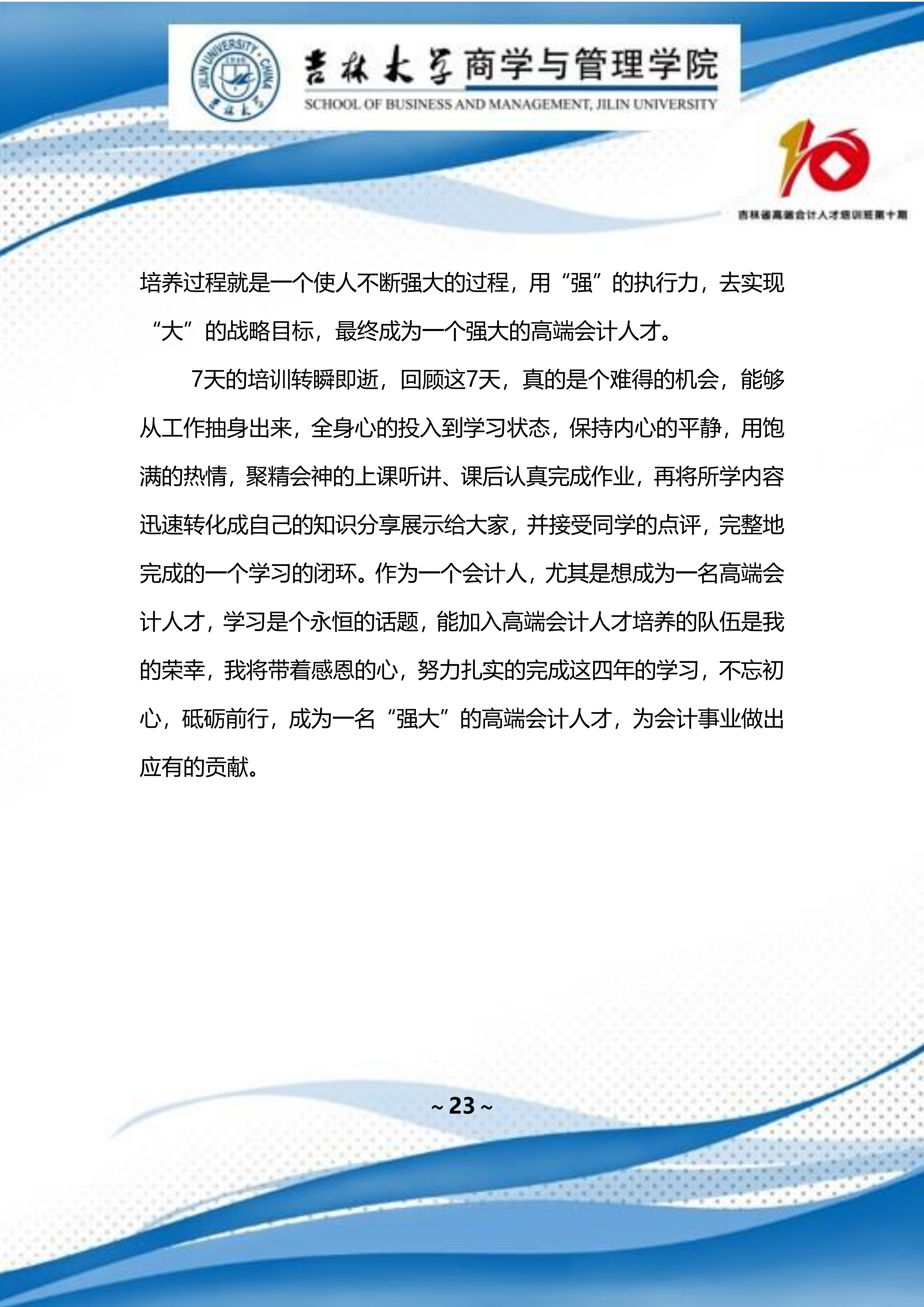 吉林省高端会计人才培训班 第十期班期刊 【2022 年第 01 期】