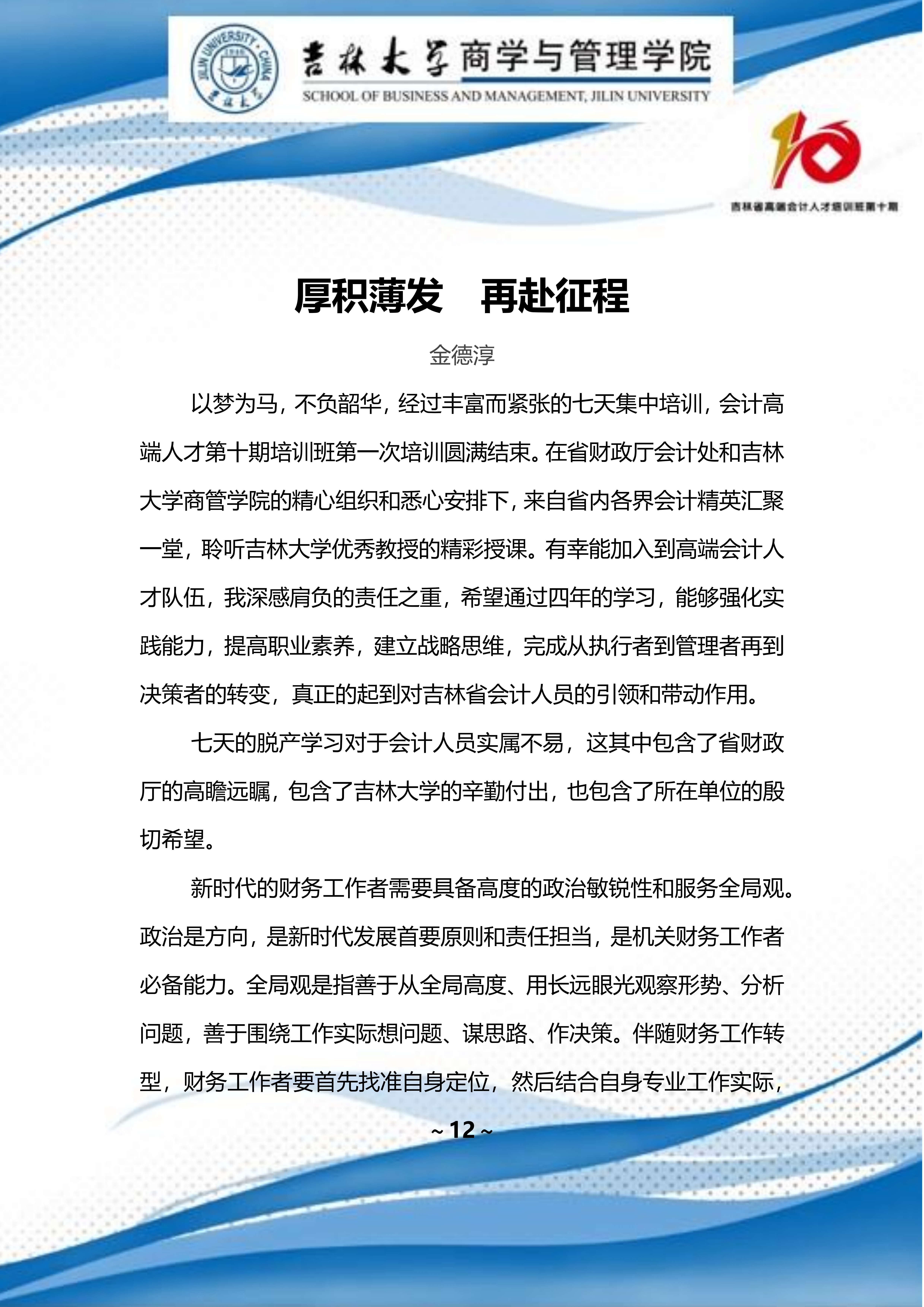 中国会计报报道:千锤百炼十二载雁阵翱翔破苍穹——吉林省高端会计人才培养工作纪实